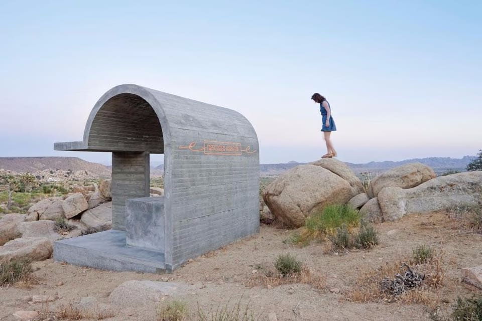 Isozaki has stated that a traditional Japanese tea house creates nature artificially. Therefore it is not nature itself. The opposite theory, he has suggested, is to consider nature as an artificial form. In the Mojave Desert, the architect's subtle yet stable interventions in a primordial landscape propose that we bear witness to the delicacy of our relationship with our planet and the resoluteness required of any structure to survive in nature and indeed bind itself to such a landscape.